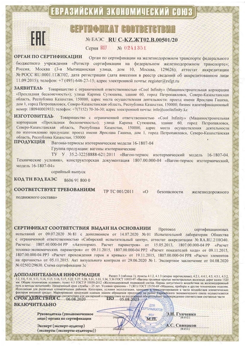 Вагон-термос предназначен для перевозки грузов, требующих сохранения температуры, но не нуждающихся в охлаждении или обогреве во время транспортировки. Благодаря многослойной теплоизоляции стенки вагона эффективно поддерживают температуру на протяжении всей поездки. Вагон-термос часто используется для перевозки таких товаров, как кондитерские изделия, замороженные продукты или химические реагенты, для которых важно сохранять постоянные условия хранения.